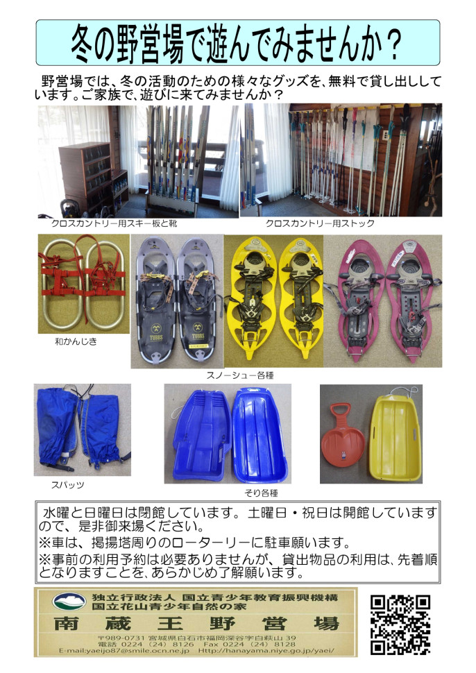 冬の野営場で遊んでみませんか?